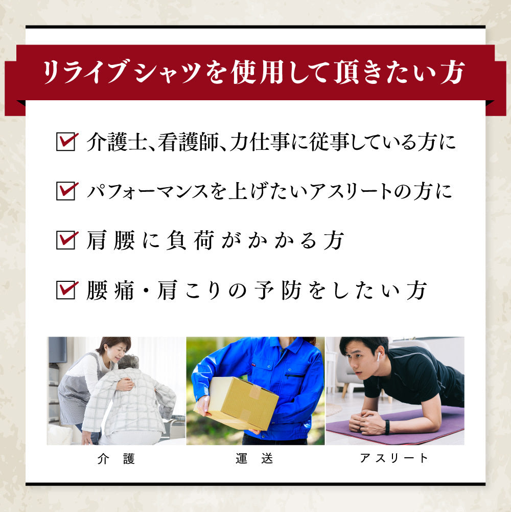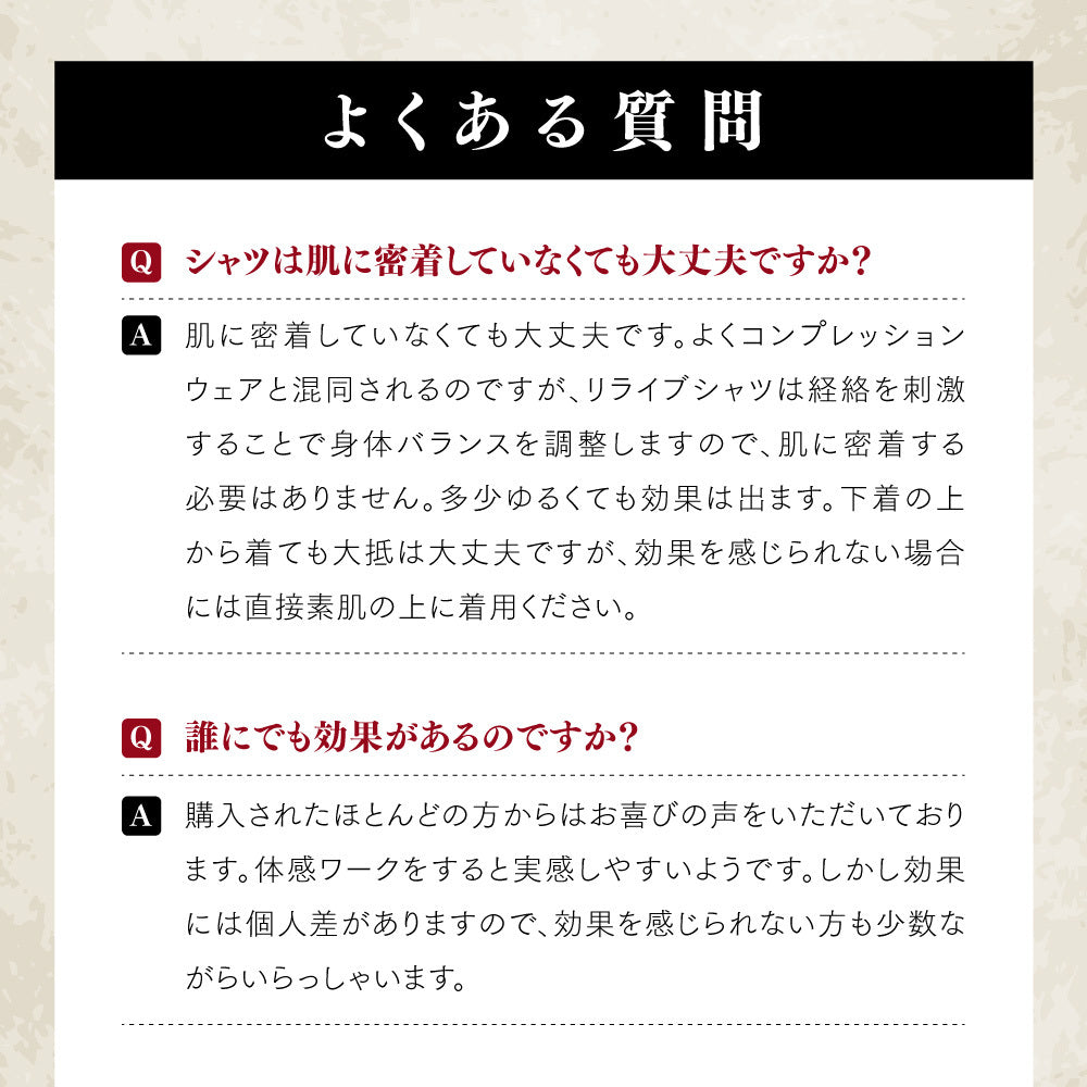リライブシャツは一定期間着用すると体が効果を覚えますので脱いだ時も効果は残ります。
